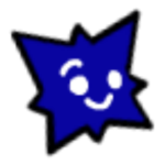 He has two white circles for eyes and a white mouth that changes in shape depending on his expression.